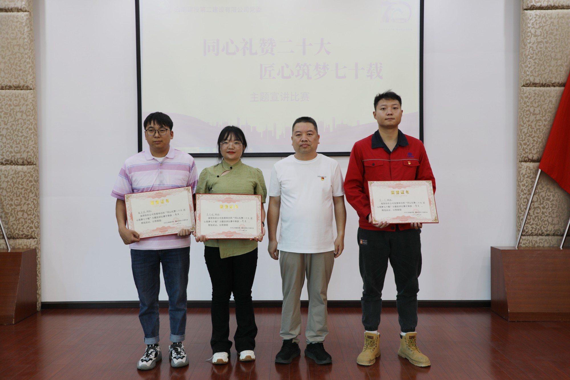 來自各基層單位的22個宣講作品已于4月26日復賽進行比拼,最終10個作品進入決賽角逐。本次比賽旨在全面學習把握落實黨的二十大精神,全面貫徹習近平新時代中國特色社會主義思想,將黨的二十大精神與公司成立70周年主題相結(jié)合,推動黨的創(chuàng)新理論貫徹落實到公司的改革發(fā)展中來,營造濃厚氛圍,講好二建故事。