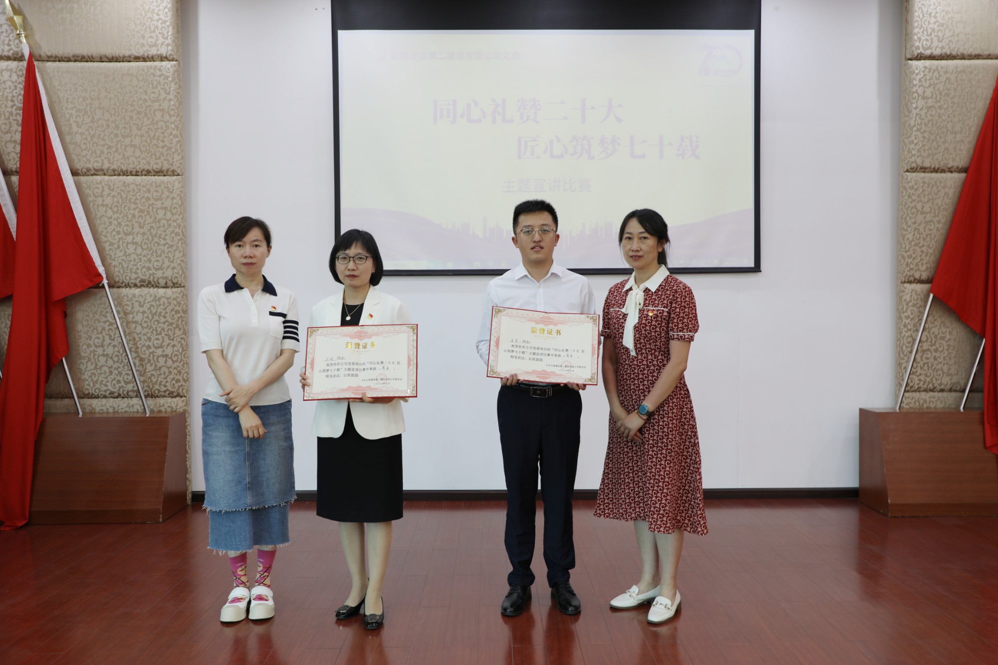 5月8日下午,由公司黨委主辦,工會、團委協(xié)辦的“同心禮贊二十大 匠心筑夢七十載”主題宣講比賽在二樓會議室舉辦。公司黨委副書記、董事長陳定華,公司領導孫明書,黨委委員、總經(jīng)濟師陰明珉,黨委委員、工會主席胡云紅,黨委委員、財務總監(jiān)代映華出席活動并擔任評委。