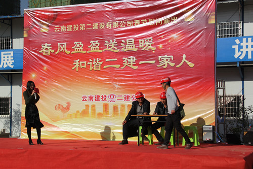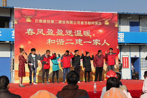 “春風(fēng)盈盈送溫暖、和諧二建一家人?!?1月14日至15日,公司團(tuán)委組織公司文藝團(tuán)隊(duì)到昭通市昭陽區(qū)2013年保障房項(xiàng)目開展春節(jié)慰問演出,為項(xiàng)目一線的職工和工友們送去新春佳節(jié)的祝福。