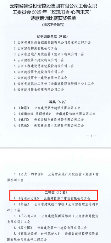 近日,集團(tuán)工會(huì)公布了2025年“頌黨恩·詠經(jīng)典·傳家聲”親子誦讀活動(dòng)及“玫瑰書香·心向未來”女職工詩歌朗誦比賽結(jié)果,由公司工會(huì)報(bào)送的視頻作品《祖國頌歌》《傳承她力量》從近百個(gè)作品中脫穎而出,分別榮獲一等獎(jiǎng)、二等獎(jiǎng)。