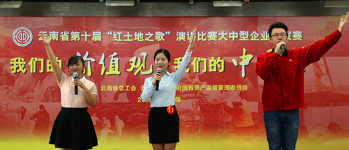 本屆紅土地之歌演講比賽于24日至25日在黃土坡省工青婦干校4號(hào)樓二樓會(huì)議室舉行,由云南省總工會(huì)和省國資委聯(lián)合舉辦,共有來自全省34家大中型企業(yè)的71名選手、54個(gè)節(jié)目參加角逐,競爭激烈。集團(tuán)工會(huì)選派了《沙漠里的戰(zhàn)斗》和《媽媽的心愿》兩個(gè)節(jié)目參加本屆演講比賽。在參加比賽之前,集團(tuán)團(tuán)委和公司團(tuán)委多次組織相關(guān)人員進(jìn)行排練,經(jīng)過多次修改最終確定演講稿內(nèi)容,并于本月22日、23日分別在昆明滇池國際會(huì)展中心項(xiàng)目和四公司雙河灣項(xiàng)目進(jìn)行預(yù)演。