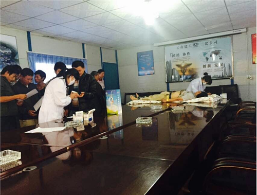 近段時間以來,公司各直管部紛紛積極響應公司號召,在多個項目部為農(nóng)民工進行免費的健康體檢。第七直管部和第十直管部分別于7月31日和8月3日,在保山市2013年保障房項目聯(lián)系當?shù)蒯t(yī)院到項目部為農(nóng)民工進行健康體檢。8月4日,公司將醫(yī)院“搬到”了昆明滇池國際會展中心項目部,為農(nóng)民工兄弟免費健康體檢及常見病的知識普及,并為他們建立健康檔案。8月10日,路橋分公司東南繞C4標項目聯(lián)系公司醫(yī)院到項目部為農(nóng)民工進行健康體檢。8月18日,第七直管部聯(lián)系公司醫(yī)院到峨山縣嶍峨商貿(mào)城項目免費為項目部農(nóng)民工進行體檢。